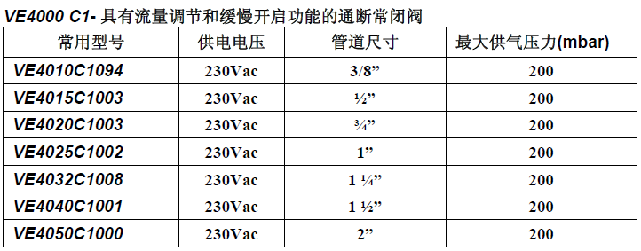 (1) VE400AA 为点火电磁阀,VE4000(A, B, C) 为“A”级常闭电磁阀。
